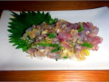【1】 ぶつ切りにしたアジのタタキ(※アジのタタキを参照※)に,