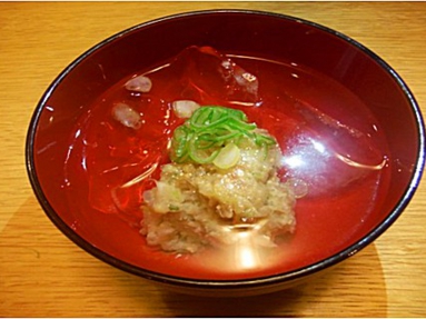 【1】 アジのなめろう(※アジのなめろう参照※)に氷水と、